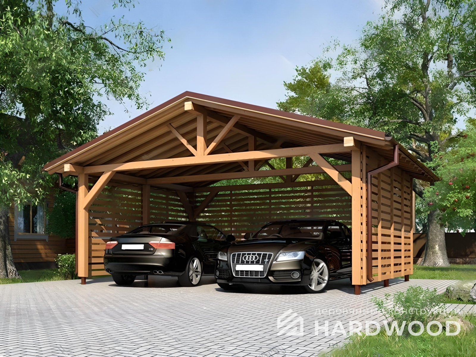| Название модели: | Навес из дерева для машин двухскатный №145 |